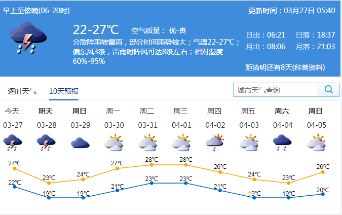 見圳客戶端·深圳新聞網(wǎng)3月27日訊 當(dāng)前,我市進(jìn)入強降雨和強對流天氣多發(fā)季節(jié)。氣象部門預(yù)計,27-28日受高空槽和冷空氣影響,有一次雷雨過程,并伴有短時強降水和8-9級短時大風(fēng)等強對流天氣,28日氣溫下降3℃左右;29日云量較多,有分散小雨。市防汛防旱防風(fēng)指揮部辦公室昨天發(fā)出通告,提醒各區(qū)、各有關(guān)單位提前做好局地強對流天氣防范工作。