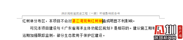 記者在《環(huán)評報(bào)告》中看到,有關(guān)表述存在錯誤屬實(shí),在對深圳灣航道疏浚工程(一期)項(xiàng)目可實(shí)現(xiàn)的目標(biāo)的闡述中,將“深圳市的目標(biāo)”闡述為“湛江市的目標(biāo)”;將“深圳灣紅樹林”表述成“湛江灣紅樹林”;將“深圳市國民經(jīng)濟(jì)”表述成“湛江市國民經(jīng)濟(jì)”;將“深圳海事局”表述成“湛江海事局”等。