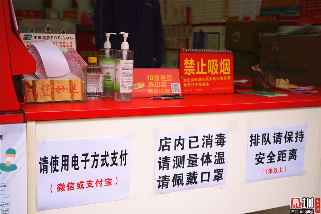 另一家在福田區(qū)華發(fā)北路,店號(hào)為83021044的投注站點(diǎn),門(mén)口已經(jīng)被店員用桌子堵上,并貼上了相關(guān)防疫告示,“之前深圳福彩中心的工作人員來(lái)檢查過(guò),后續(xù)也會(huì)給我們配送一些防護(hù)物資?!庇浾咴诖擞^察了30分鐘,期間僅有兩位彩民前來(lái),共購(gòu)買了8元彩票。店主馬先生向記者介紹,“以前大家都會(huì)來(lái)店里邊坐,主要買的是20分鐘開(kāi)兩次的‘快樂(lè)彩’,現(xiàn)在都不給進(jìn)來(lái),那個(gè)彩票也暫停銷售了。”
