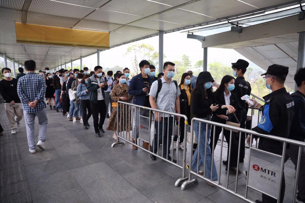 ▲民樂地鐵站入口處排起了長(zhǎng)隊(duì)。