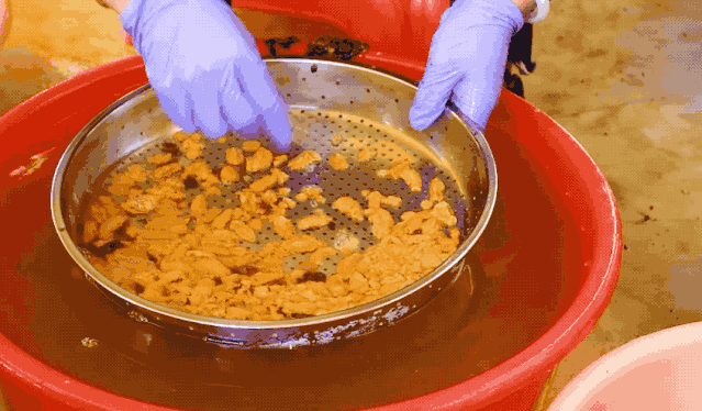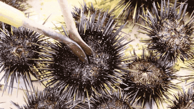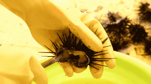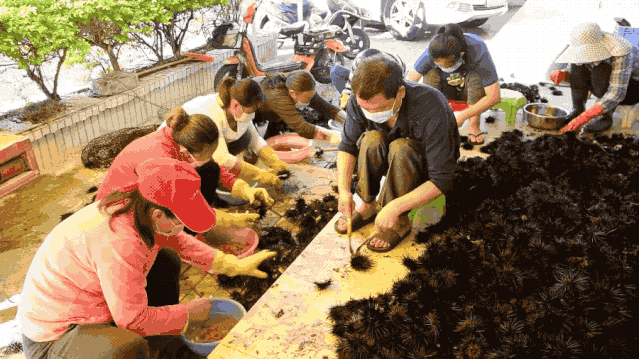 記者來(lái)到大鵬新區(qū)南澳海港路的潤(rùn)成海膽專賣店,看到工人們上下飛舞著鐵鉤“挖海膽”。南澳本地人口中所謂“挖海膽”就是海膽加工,打開(kāi)海膽殼,把海膽肉取出來(lái),然后用海水清洗干凈。從捕撈到上岸加工處理都必須一天之內(nèi)完成,只有嚴(yán)守時(shí)間的把控,爭(zhēng)分奪秒才配擁有鮮美和誘人的口感。