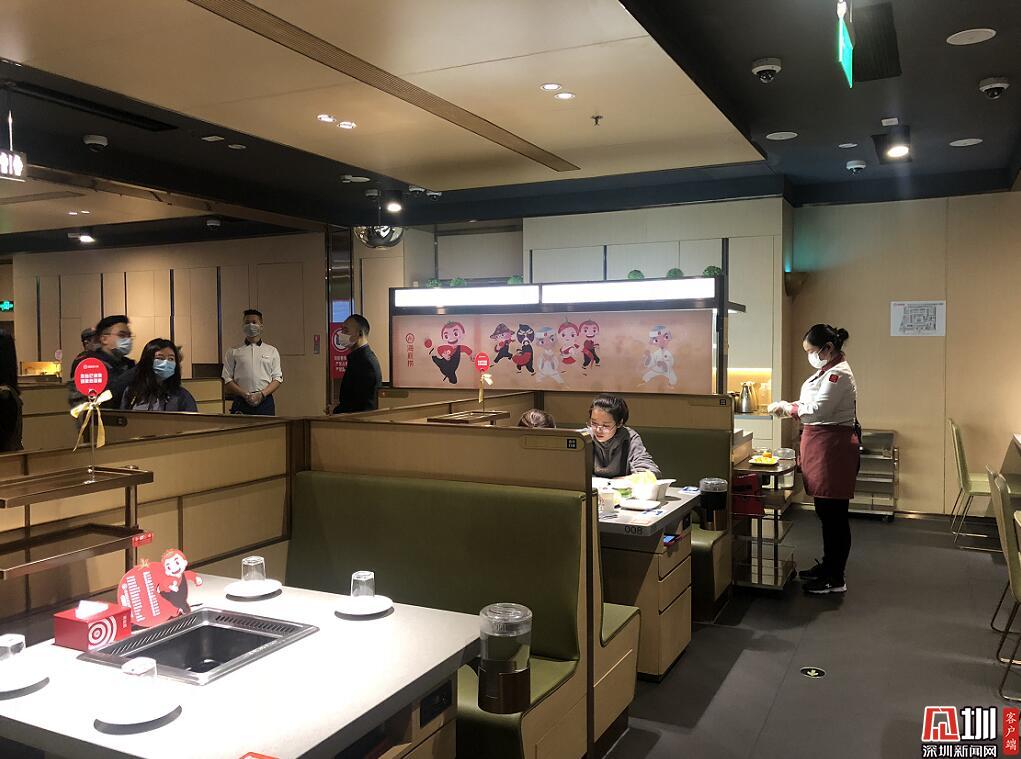 消費(fèi)者在海底撈就餐,對角線隔開坐。