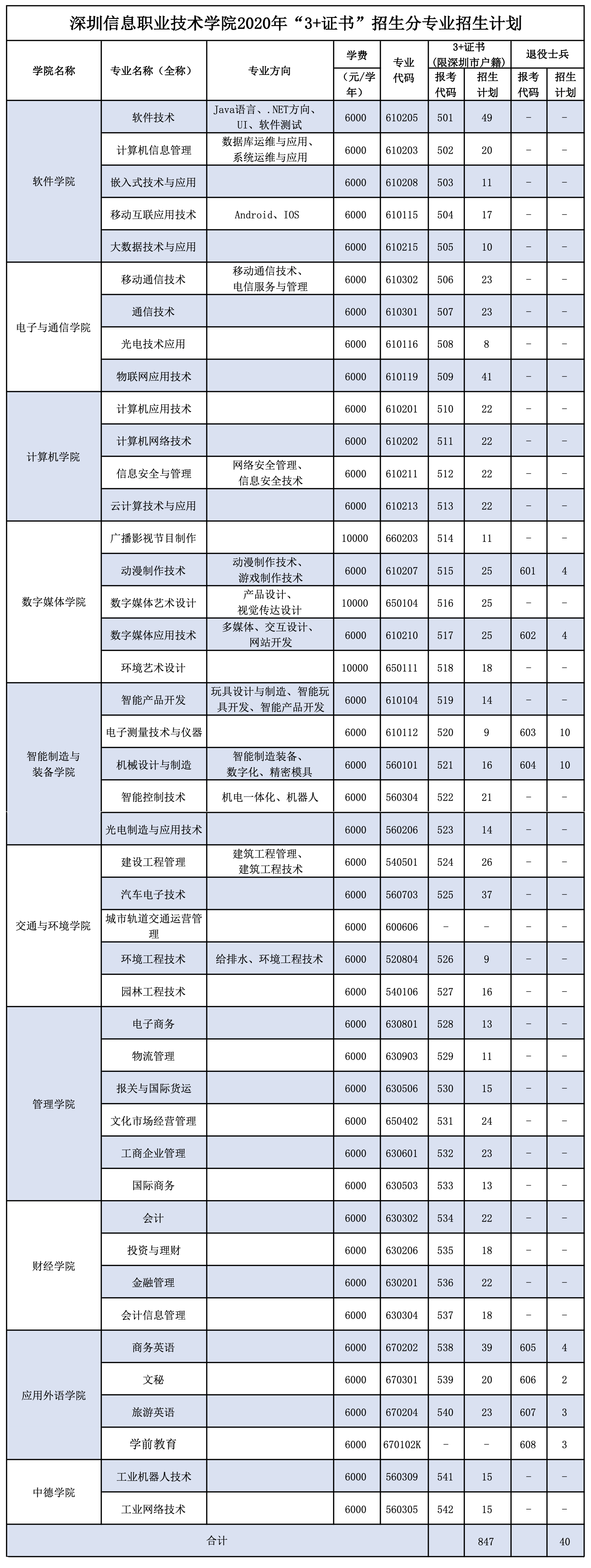 4月7日啟動報名!深圳信息學(xué)院春季高考計劃招生3287人