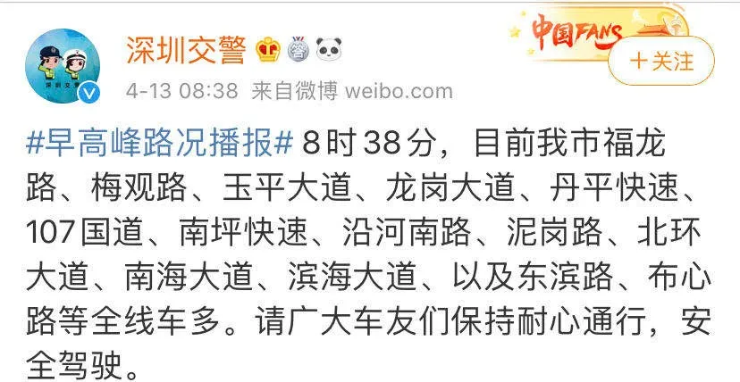 而今早,深圳交警也發(fā)布微博稱早高峰期間,我市多個(gè)路段全線車多,具體路段見下圖↓↓↓