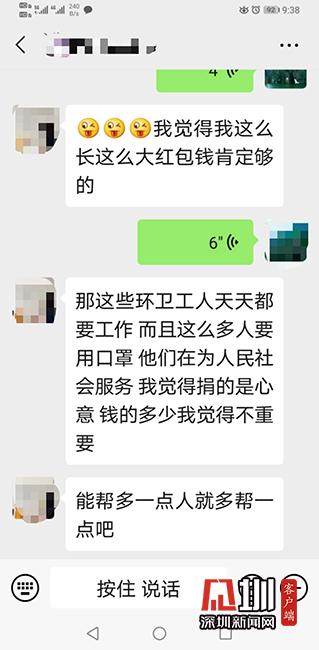 “爸爸,我想用攢下的壓歲錢,為環(huán)衛(wèi)工人們買一些口罩,他們辛苦為社區(qū)服務(wù),我也想為他們盡一份力?!?月15日下午,家住龍光社區(qū)光前村的兩位初中生鄭伊淇和鄭伊婷,拿出自己積攢的部分壓歲錢購買了2000個口罩送給社區(qū)環(huán)衛(wèi)工人。