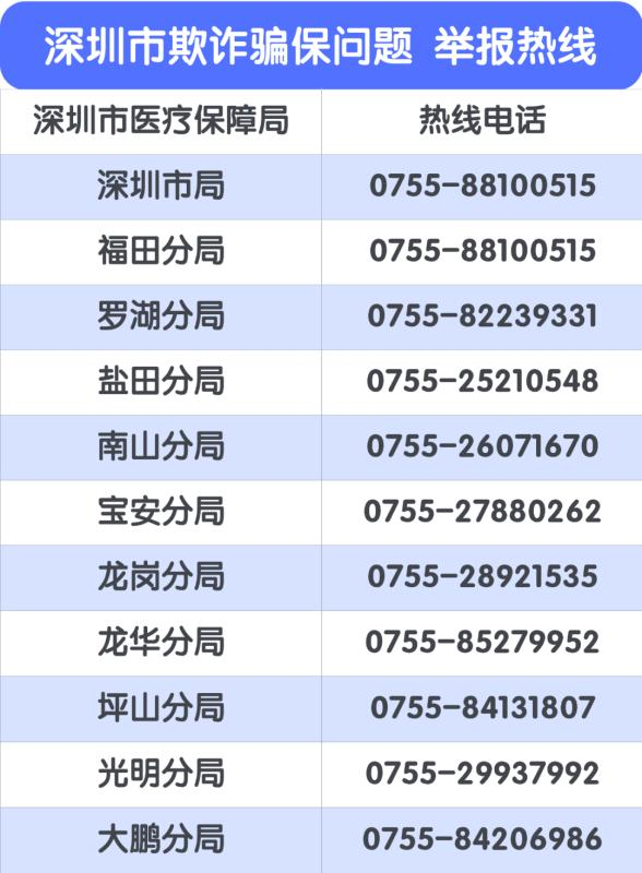 市醫(yī)保局已在深圳市各區(qū)設(shè)立投訴舉報(bào)電話,歡迎廣大市民共同參與醫(yī)?;鸨O(jiān)督管理。市民可通過(guò)實(shí)名舉報(bào)和匿名舉報(bào)方式檢舉、揭發(fā)欺詐騙保行為,經(jīng)查證屬實(shí)的,將根據(jù)《深圳市欺詐騙取醫(yī)療保障基金行為舉報(bào)獎(jiǎng)勵(lì)實(shí)施細(xì)則(試行)》對(duì)舉報(bào)人予以獎(jiǎng)勵(lì),獎(jiǎng)金最高可達(dá)10萬(wàn)元?。ㄓ浾?莊瑞玉)