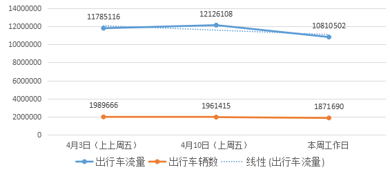 交警部門預計,今天周五晚高峰,出行車輛的次數(shù)會依然處于高位。經(jīng)對15時至21時全市出行車輛情況統(tǒng)計,4月3日(上上周五)全市出行車流量1178.51萬輛次,出行車輛198.97萬輛;4月10日(上周五)全市出行車流量1212.61萬輛次,出行車輛196.15萬輛。結合本周工作日全市出行車輛情況,深圳交警預計4月17日(本周五)全市出行車流量較工作日稍有增加,增加約9.34%,達1182.97萬輛次。