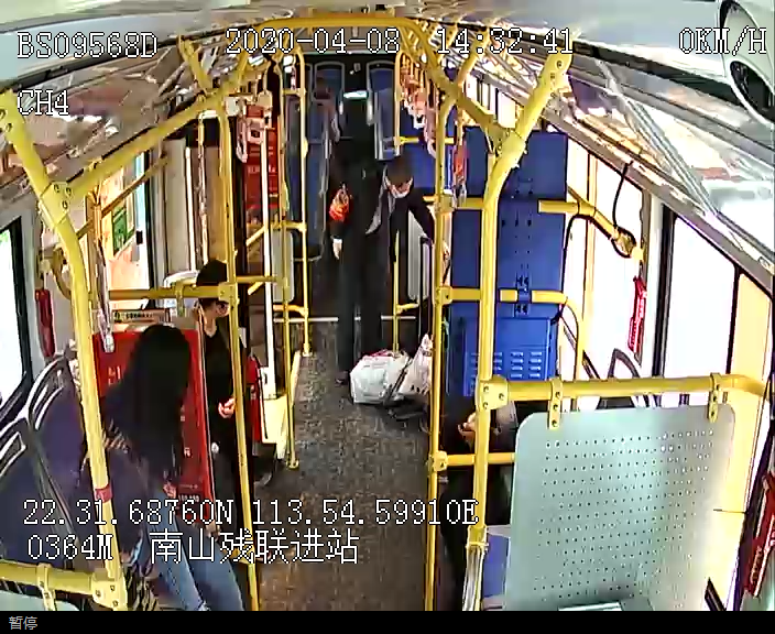 4月8日下午,67歲的李女士在廣中醫(yī)深圳醫(yī)院站乘坐深圳巴士集團(tuán)四分公司前海車隊M364線粵B09568D車前往南山村西站。在當(dāng)天下午14時31分,當(dāng)班駕駛員曹利平駕駛著車輛進(jìn)入南山殘聯(lián)站時,聽到有乘客在車上的呼喊聲,發(fā)現(xiàn)坐在后門附近座位上的李女士陷入暈厥,就連隨身的買菜的手拉車車滑倒至后門踏板處造成的聲響和旁邊乘客的呼喊提醒聲也沒有聽見。由于擔(dān)心老人家的身體狀況,曹師傅走到李女士身邊多次呼喚,直到她清醒過來。