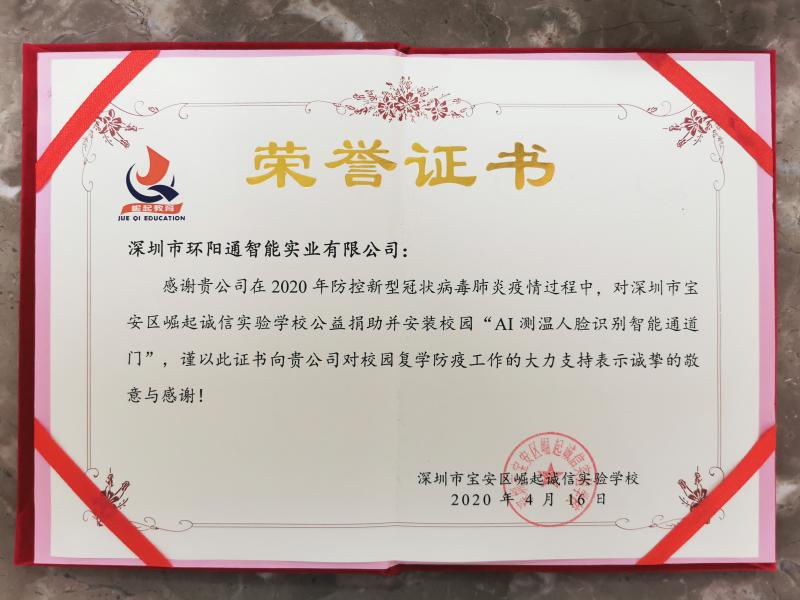 見圳客戶端·深圳新聞網(wǎng)2020年4月17日訊 (記者 潘寶儀 陳彬)4月16日下午,深圳市環(huán)陽通智能實業(yè)有限公司(以下簡稱“大陽智通集團” )向崛起教育集團的深圳市寶安區(qū)崛起誠信實驗學校和深圳市寶安區(qū)崛起第一幼兒園捐贈多套防疫測溫人臉識別通道,并舉辦公益捐助活動,助力學校全面復學。