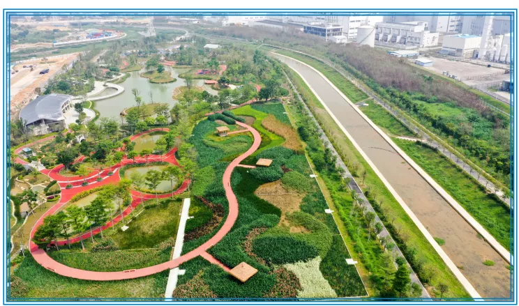 鵝頸水(濕地段)位于光明區(qū)光明大道與東長路交匯處。鵝頸水發(fā)源于鵝頸水庫上游雷公峰,河道全長5.64公里,流域面積22.28平方公里。鵝頸水通過近幾年的治理,恢復(fù)了原本的清澈見底、河水潺潺,兩岸鮮花綻放,芬芳撲鼻,頗具田園詩意。