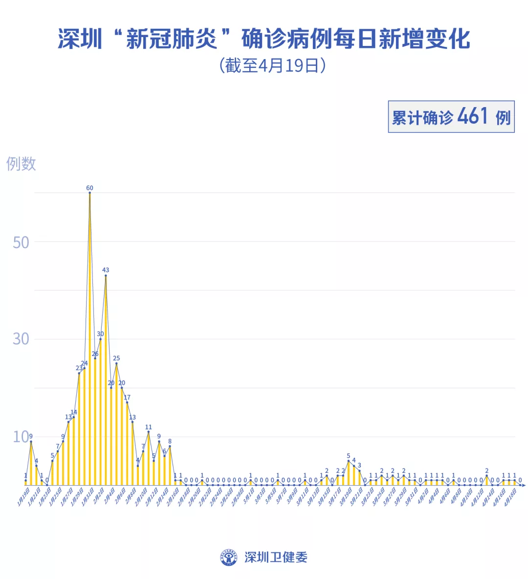 截至4月19日24時(shí),深圳累計(jì)報(bào)告新冠肺炎病例461例。4月19日當(dāng)天新增無癥狀感染者2例,出院1例。