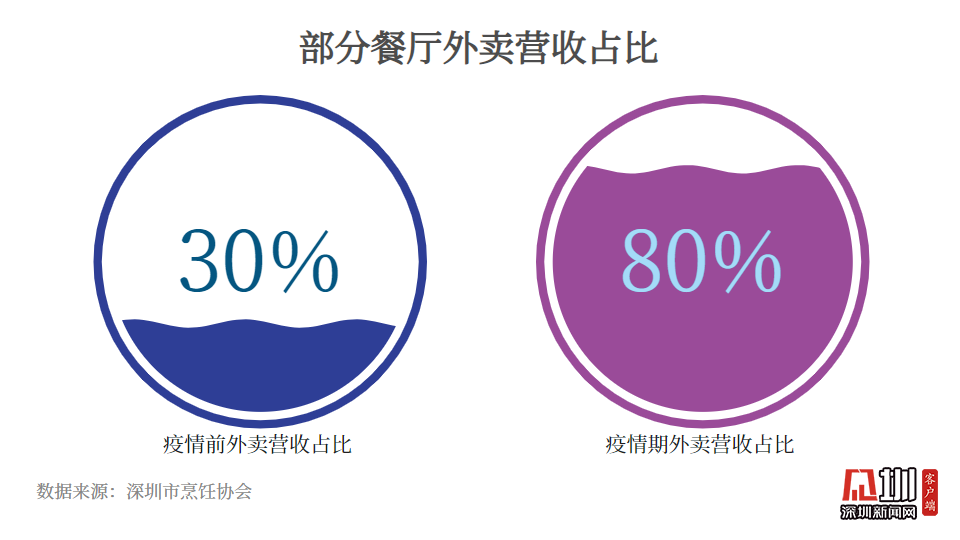 大秦小宴、云海肴……深圳餐飲行業(yè)靠外賣實現(xiàn)“突圍”。根據(jù)深圳市烹飪協(xié)會的數(shù)據(jù),在疫情期間,部分餐飲店的外賣營收額占比增長了200%,一些過去不提供外賣服務(wù)的商家,如傳統(tǒng)大酒樓、米其林餐廳、五星級酒店等,為了創(chuàng)收,也加入到了外賣平臺。“以前外賣營收能占總收入30%就算不錯的,疫情期部份餐廳已經(jīng)占到收入的80%甚至90%。”深圳市烹飪協(xié)會常務(wù)副會長劉永忠介紹。