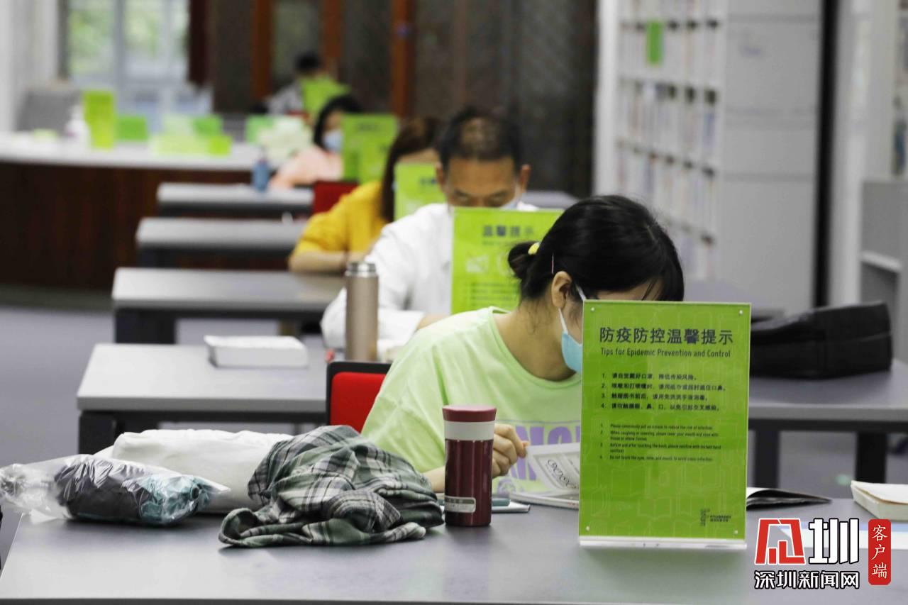 現(xiàn)在正處疫情期間,福田區(qū)圖書館也調(diào)整了開放時間,從原來的朝九晚九,改為朝九晚五。在座位安排方面,記者在現(xiàn)場看到,自習(xí)的市民基本上都是單人單桌,保持安全距離。