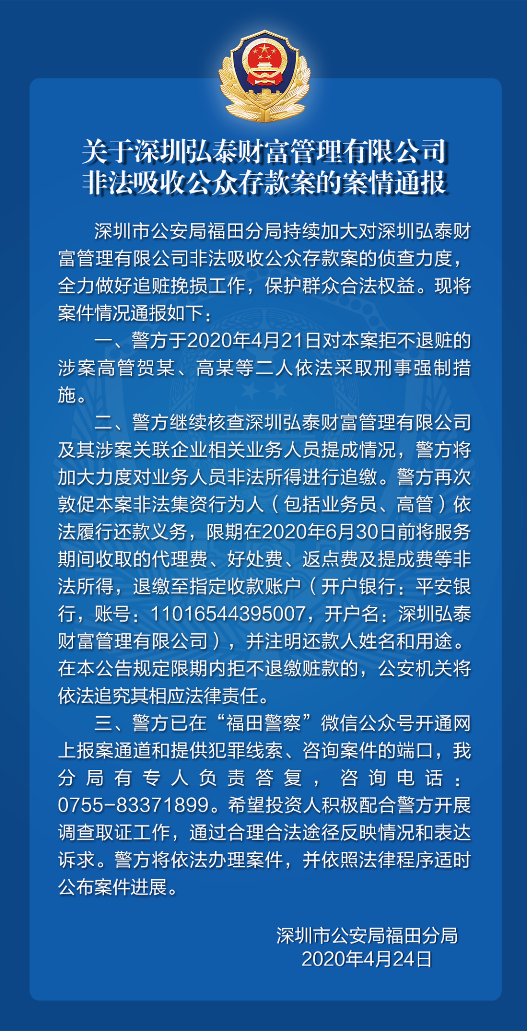 關(guān)于深圳弘泰財(cái)富管理有限公司非法吸收公眾存款案的案情通報(bào)