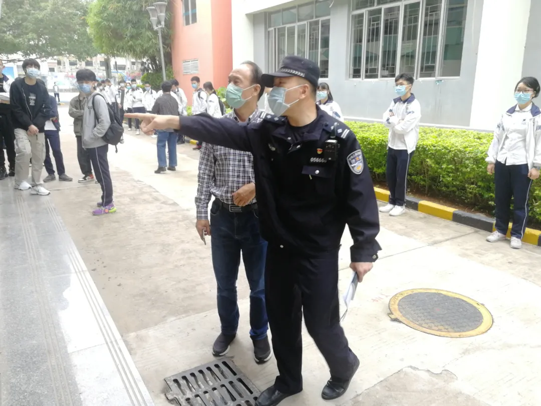 “學(xué)校大門是校園疫情防控的第一道防線,把好校園第一道關(guān)卡至關(guān)重要,采取全封閉管理,對(duì)外來(lái)人員嚴(yán)格詢問(wèn)登記,逢車必檢、逢人必查,在上學(xué)放學(xué)高峰時(shí)段確保校門口安保力量,將風(fēng)險(xiǎn)隱患攔截在校門外?!?月21日,在福田區(qū)云頂學(xué)校排查安全隱患時(shí),福強(qiáng)派出所社區(qū)民警程印對(duì)該校安全負(fù)責(zé)人特別強(qiáng)調(diào)。據(jù)了解,截至4月25日,福田公安分局對(duì)轄區(qū)44所中學(xué)開展了檢查,發(fā)現(xiàn)并整改問(wèn)題隱患17處。