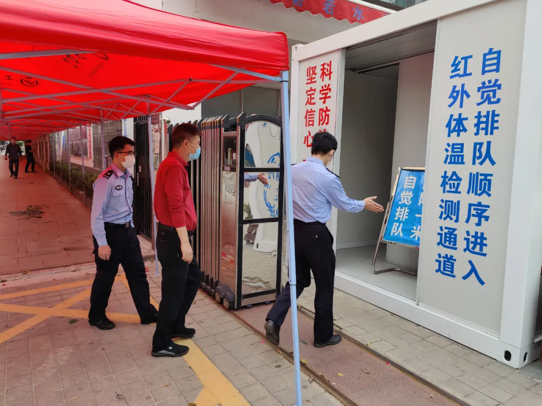學(xué)校開學(xué)前期,福田公安分局加強(qiáng)與區(qū)教育、衛(wèi)健等部門的溝通聯(lián)絡(luò),聯(lián)合學(xué)校建立“協(xié)作聯(lián)動(dòng)、信息互通”的工作機(jī)制,督促學(xué)校主動(dòng)落實(shí)疫情防控責(zé)任,加強(qiáng)校園內(nèi)、外部安保力量,做好人防、物防、技防等防范措施,在上放學(xué)高峰時(shí)段加強(qiáng)門前值守、巡查,在非上學(xué)時(shí)段全面封閉化管理,守好疫情防控的“第一道關(guān)卡”。