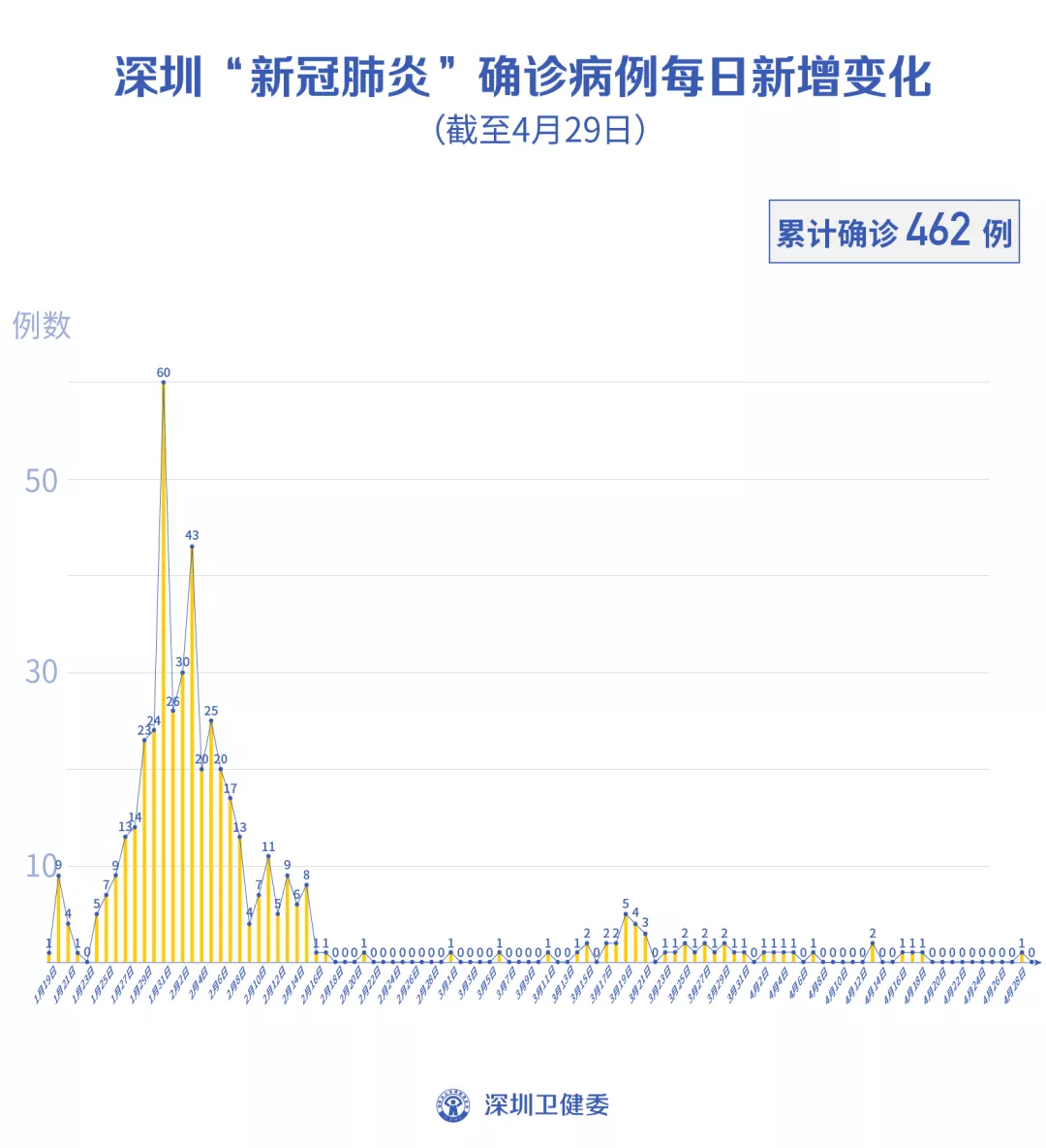 截至4月29日24時(shí),深圳累計(jì)報(bào)告新冠肺炎病例462例。4月29日當(dāng)天新增出院3例。