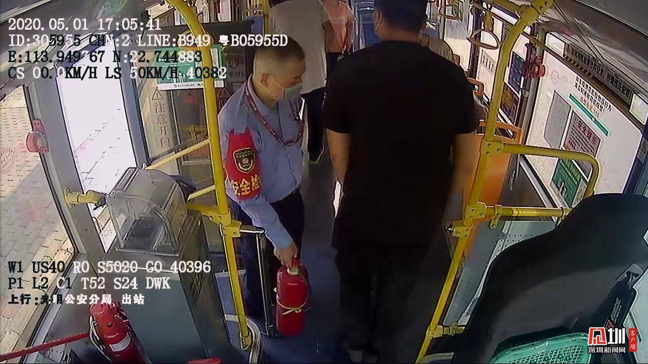 見(jiàn)圳客戶端·深圳新聞網(wǎng)2020年5月2日訊(見(jiàn)圳客戶端、深圳新聞網(wǎng)記者 陳致遠(yuǎn))“有哪位乘客會(huì)使用滅火器?幫忙下車救一下火!”當(dāng)看見(jiàn)濃煙從轎車內(nèi)瞬間冒出,深圳西部公汽塘家車隊(duì)B949線駕駛員鄧程業(yè)腳點(diǎn)剎車,一拉手剎,拉開(kāi)車門(mén)與兩名乘客就沖上前?!班坂邸睅紫?,滅火器將明火壓制住,整個(gè)過(guò)程約3分鐘,并沒(méi)有影響到后續(xù)車輛的運(yùn)營(yíng)。