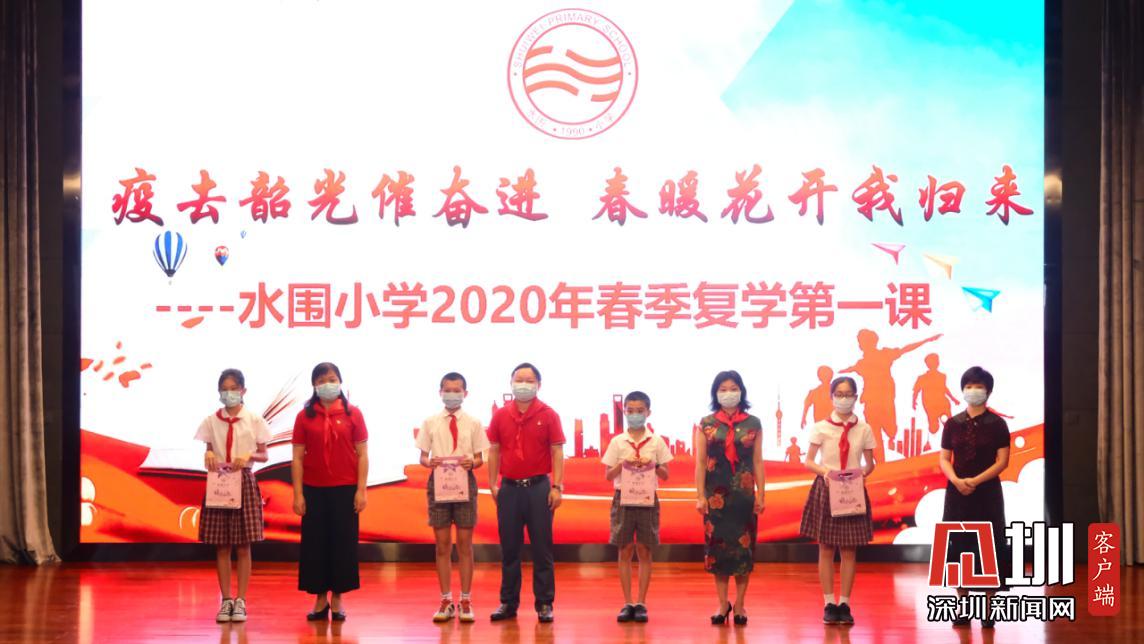 疫情期間,水圍小學(xué)“停課不停學(xué),停課不停教”,進(jìn)行了為期三個(gè)月的線上教學(xué)。在線上學(xué)習(xí)的這段時(shí)間里,學(xué)校涌現(xiàn)了一批在德智體美勞各方面表現(xiàn)優(yōu)異的同學(xué),他們被評(píng)為水圍小學(xué)“紅領(lǐng)巾十星”,區(qū)教科院李楠、衛(wèi)生健康副校長明昭、校長劉銳娟、校長李月琴副與副校長楊禹清在此次“復(fù)課典禮”中為獲獎(jiǎng)學(xué)生代表頒獎(jiǎng),并在典禮的最后,為在場的學(xué)生代表發(fā)放了暖心包。