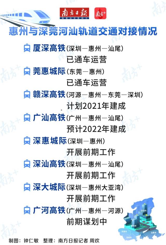 在惠陽區(qū)的廈深高鐵惠州南站,每天有數(shù)十趟列車通往深圳,接近公交化運營,10分鐘可抵深圳坪山站,30分鐘即到深圳北站。
