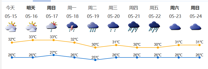 我市多云間晴天,局部有短時(shí)(雷)陣雨;氣溫26-32℃;東南風(fēng)2-3級(jí);相對(duì)濕度60%-90%。