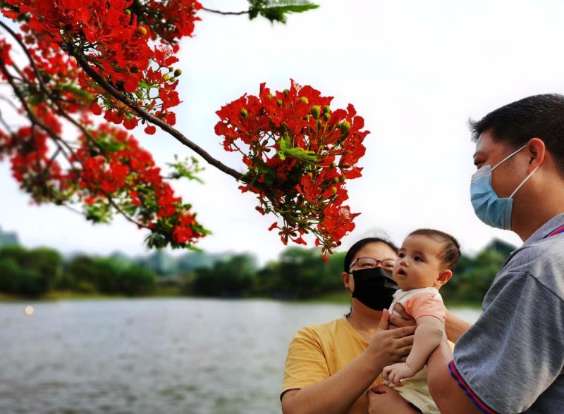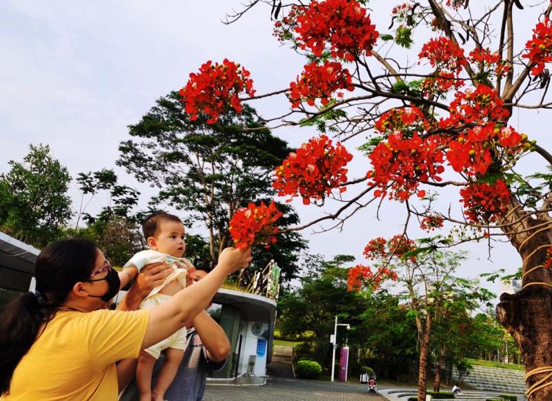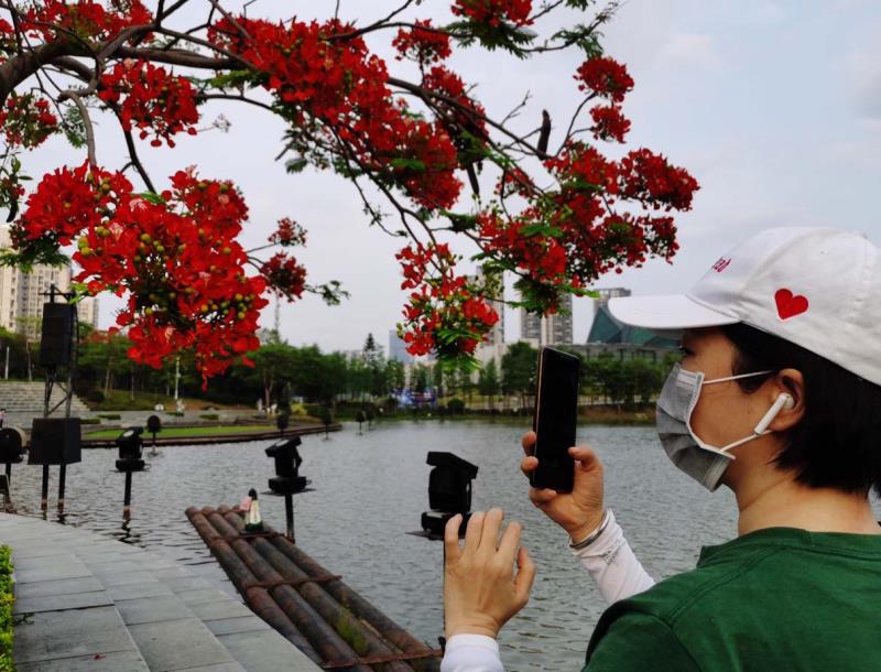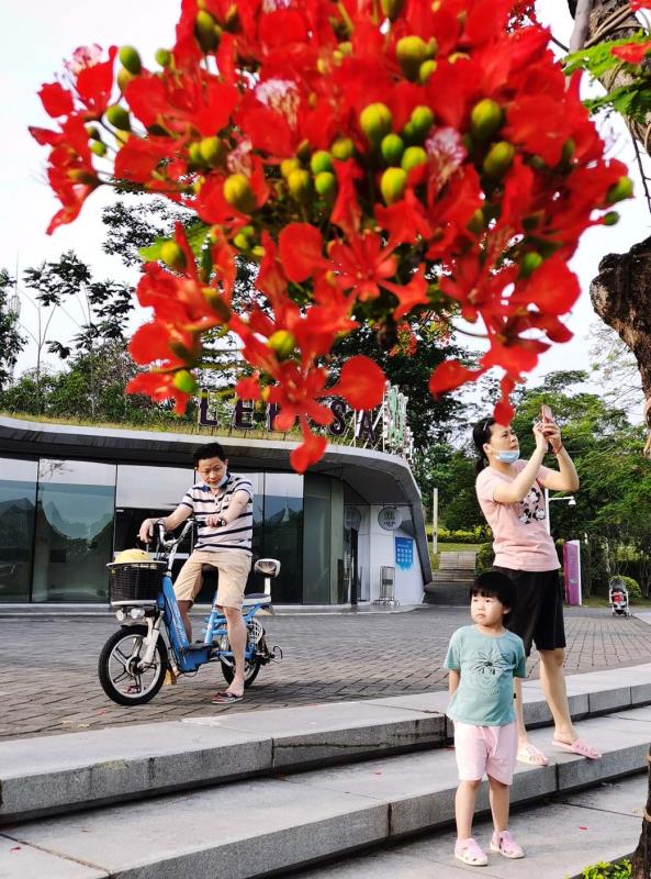 鳳凰木又名火樹、紅花楹,由于其開花時"葉如飛凰之羽,花若丹鳳之冠",因而得名「鳳凰樹」。每年5月至7月,是鳳凰樹開花的時節(jié)。在鵬城公園、道路兩旁到處可見鳳凰花盛開,當(dāng)下鳳凰花開正燦爛,錦簇花團(tuán)紅似火,成為鵬城亮麗的風(fēng)景線。圖為龍崗大運(yùn)中心鳳凰樹花開吸引市觀賞拍照。