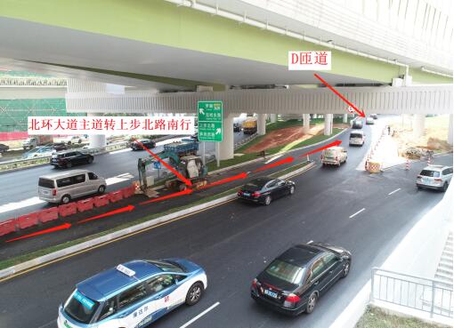 封閉北環(huán)大道主道轉上步北路南行路口,僅作應急使用,以減少對北環(huán)主路交通影響。