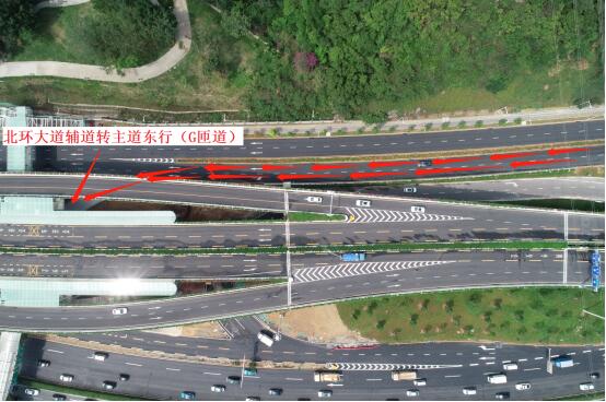 G匝道(北環(huán)大道輔道轉主道東行)航拍圖