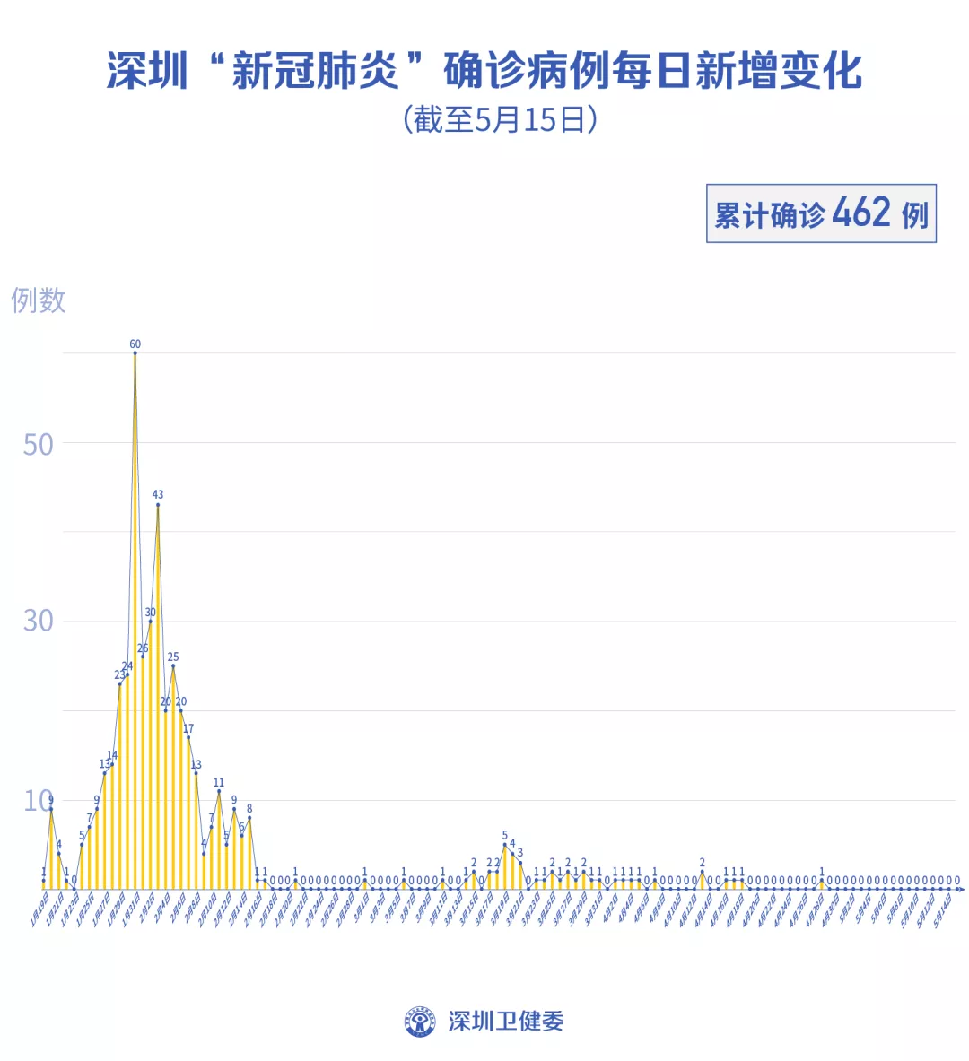 截至5月15日24時,深圳累計報告新冠肺炎病例462例。