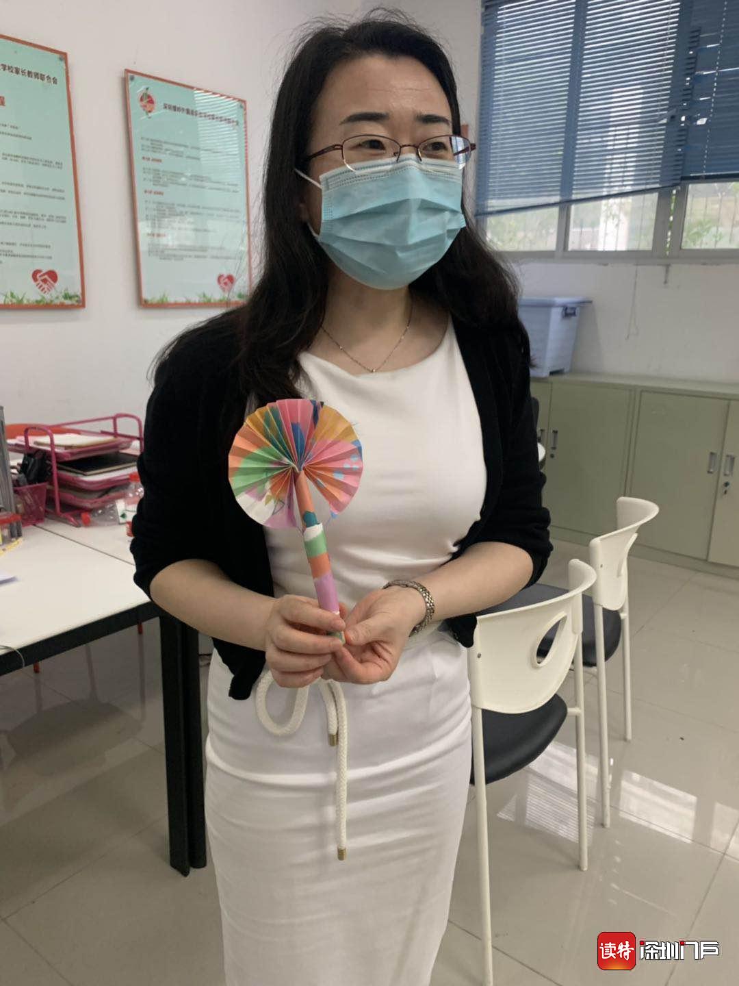 螺嶺外國語實(shí)驗(yàn)學(xué)校三年級(12)班的學(xué)生林子軒專門為老師做了小折扇,一進(jìn)校門就送到了老師手里,怕老師熱。