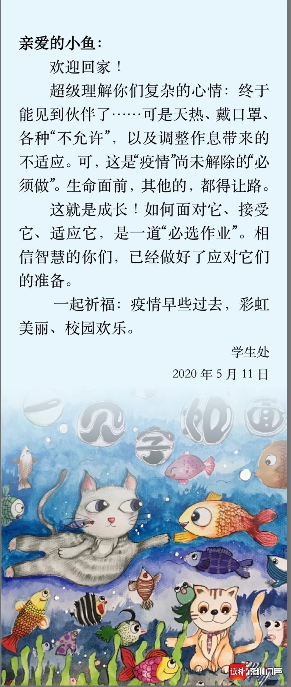 深圳小學(xué)專門為返校學(xué)生提供了“暖心包”,將口罩、疫情防控工作指引、健康信息申報(bào)卡等裝進(jìn)來。班主任在心理教師的指導(dǎo)下,根據(jù)學(xué)生的年齡特點(diǎn)和心理特點(diǎn)進(jìn)行課程設(shè)計(jì),引導(dǎo)學(xué)生分享疫情期間的“正能量”,增強(qiáng)學(xué)生對學(xué)校、班級的歸屬感,幫助學(xué)生盡快恢復(fù)正常的學(xué)習(xí)和生活節(jié)奏。(讀特記者姚卓文)