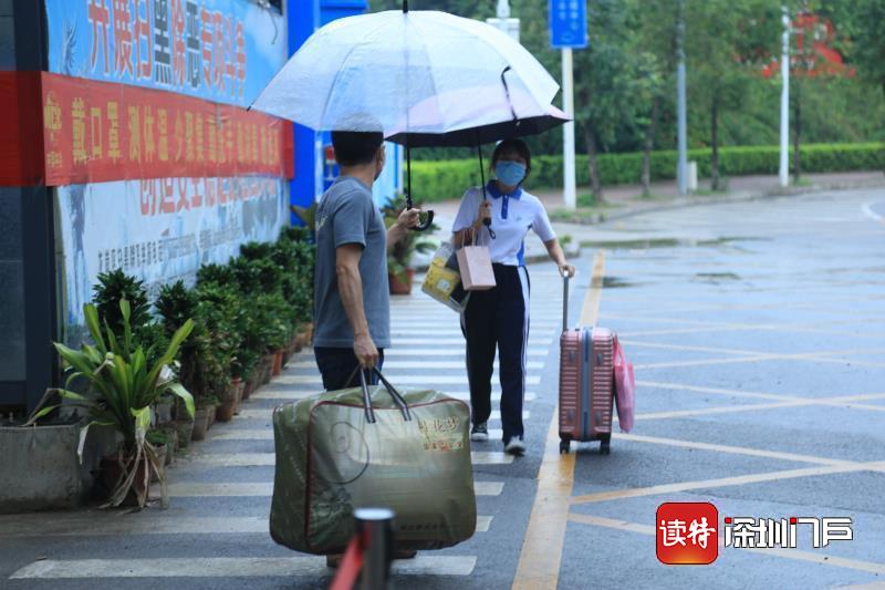 龍崗二職開學(xué)第一天,傾盆暴雨阻擋不住同學(xué)們開學(xué)的笑臉。校長、轄區(qū)民警、教師黨員志愿者早早在校門口迎接同學(xué)們回“家”。這是闊別三月的重逢,少年歸來依舊春風(fēng)滿面。