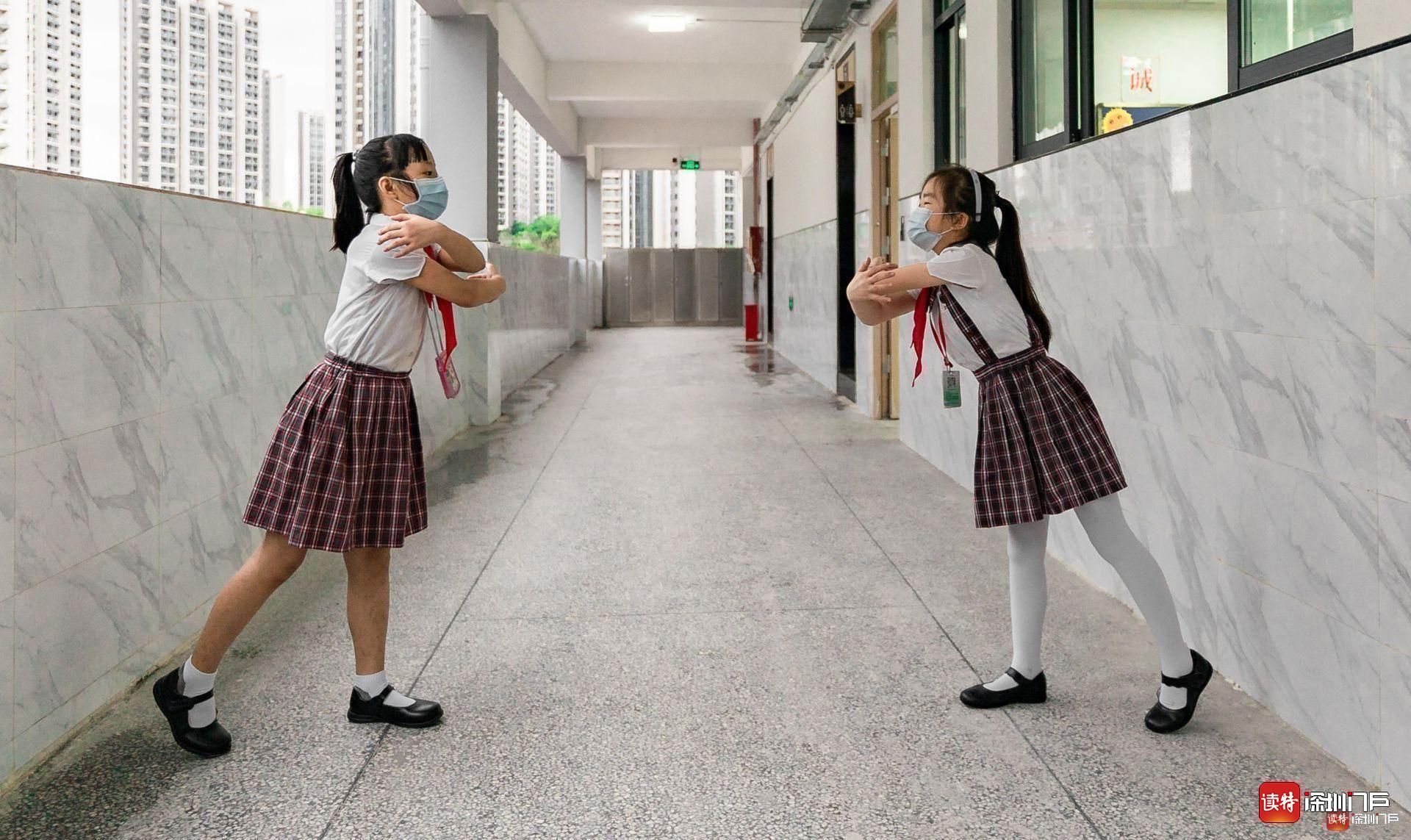 孩子們也用隔空擁抱的方式,慶祝著返校的激動(dòng)心情!(讀特記者李麗)