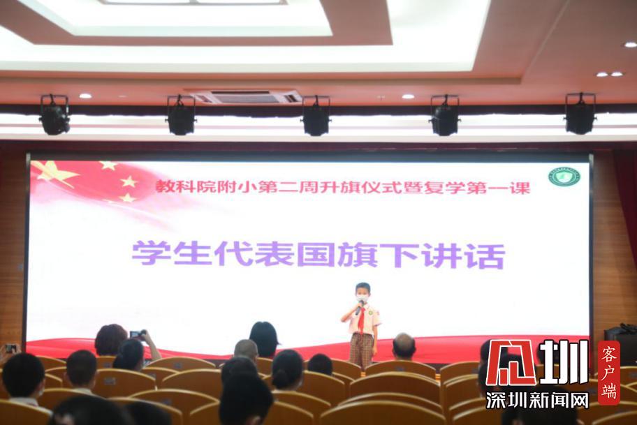 升旗儀式中教科院附小學(xué)子肅立、敬禮,眼底盛滿了崇敬與憧憬。隨后,蔡銳琛同學(xué)代表全體少先隊員國旗下講話,他分享了如何做好個人防護,如何行動踐行“從小學(xué)先鋒,長大做先鋒”的美好愿望。