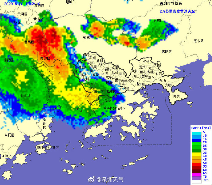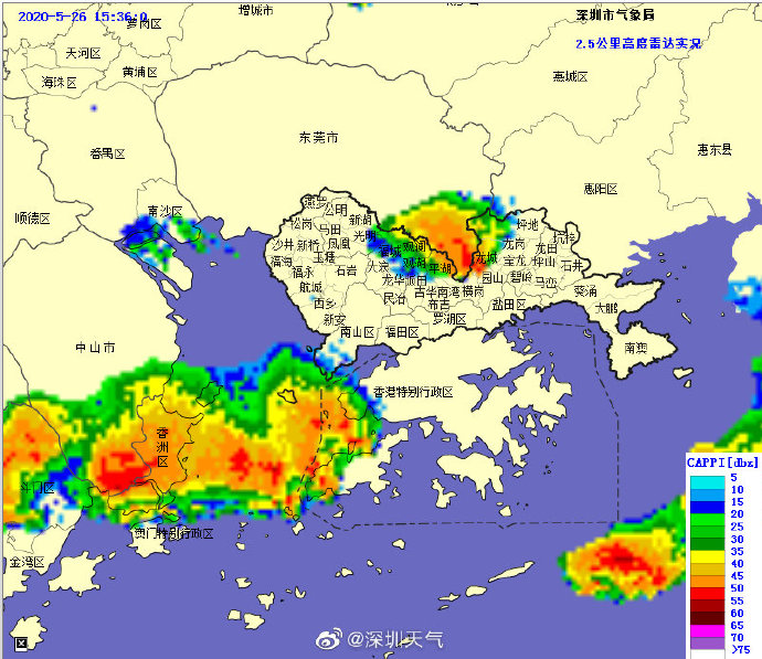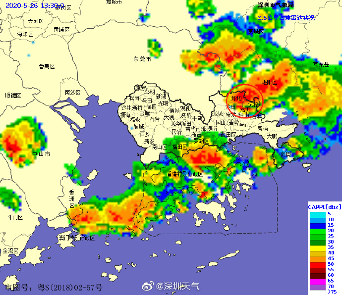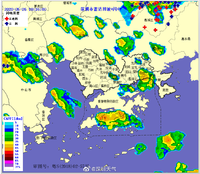 20時32分:【深圳市取消雷電預(yù)警】雷暴云團已減弱,深圳市氣象臺于2020年05月26日20時30分在全市取消雷電預(yù)警。