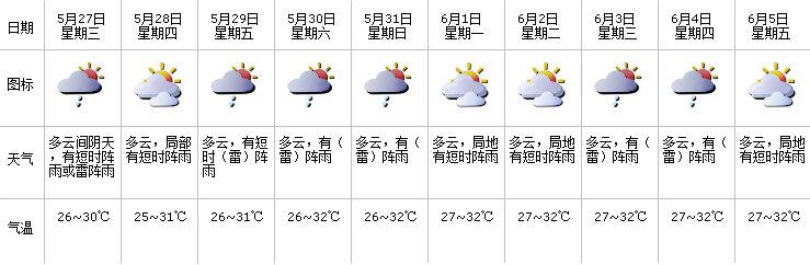 15時43分:【深圳市天氣提示】未來一周陽光陣雨相伴:27-31日多云,可見陽光,間中有(雷)陣雨,天氣日趨悶熱,27日氣溫26-30℃;展望6月1-2日多云,局地有短時陣雨。近期降雨頻繁,請繼續(xù)做好地面塌陷、滑坡等地質(zhì)災(zāi)害的防范。