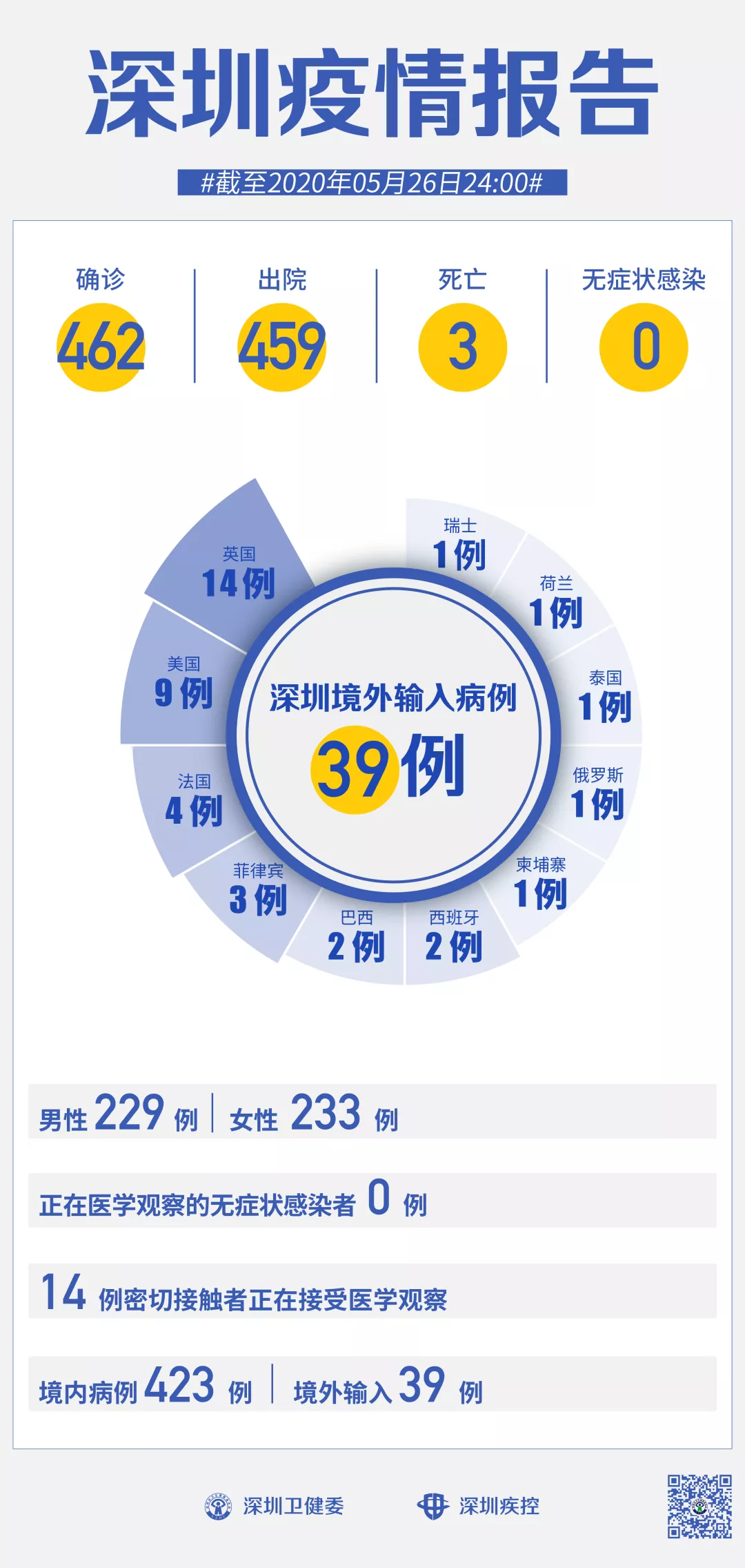 截至5月26日24時(shí),深圳累計(jì)報(bào)告新冠肺炎病例462例。