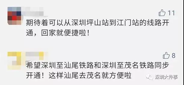 不少網(wǎng)友也紛紛留言,表示了對深茂鐵路深圳至江門段的期待。