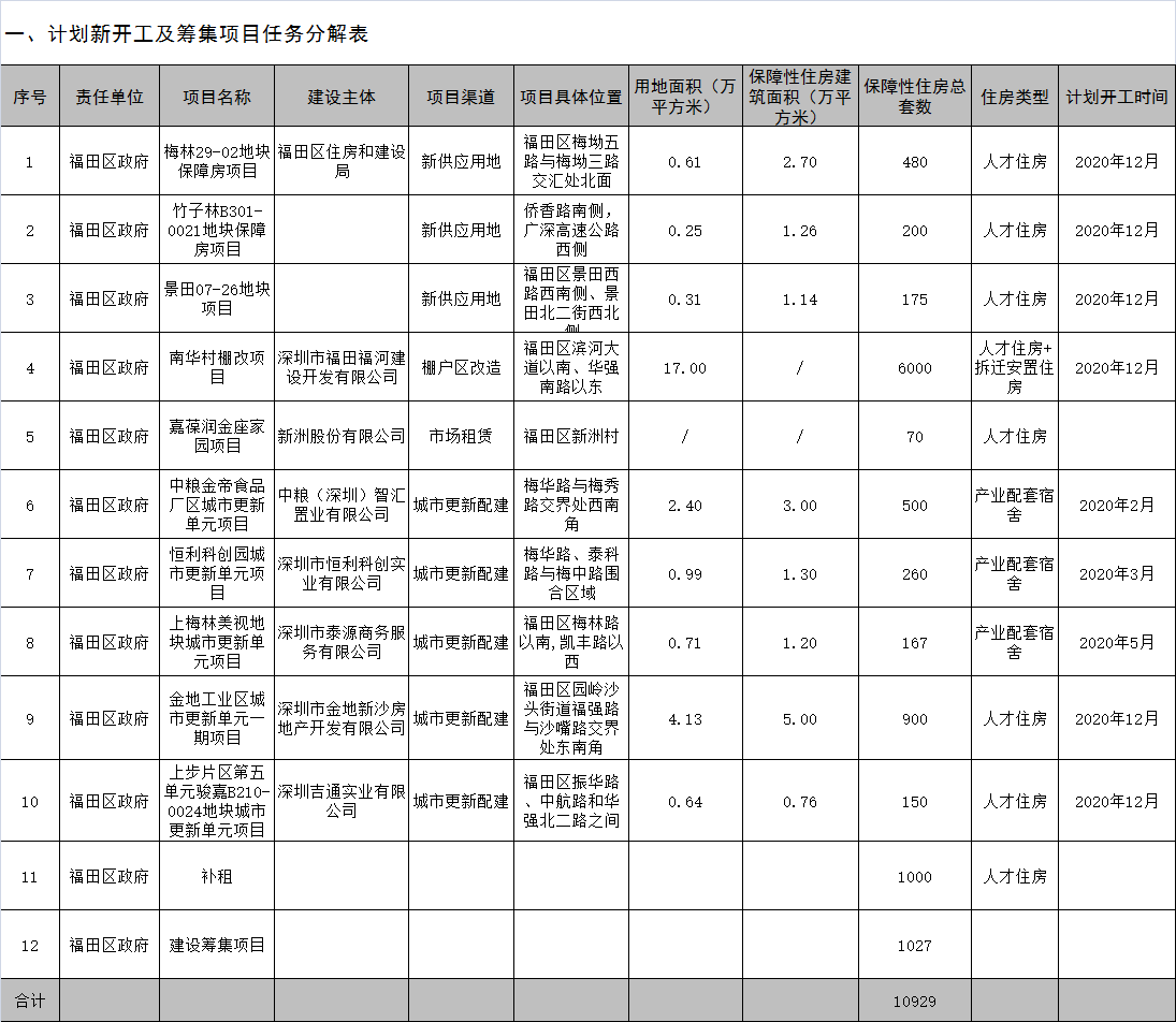 見(jiàn)圳客戶端?深圳新聞網(wǎng)2020年6月8日訊(晶報(bào)記者 劉珂)近日,福田區(qū)住房和建設(shè)局公布了《福田區(qū)2020年度安居工程工作計(jì)劃》。根據(jù)《深圳市安居工程2020年度工作目標(biāo)責(zé)任書(shū)》(以下簡(jiǎn)稱(chēng)責(zé)任書(shū))有關(guān)任務(wù)要求,福田區(qū)研究制定了2020年度安居工程新開(kāi)工及籌集、基本建成(含竣工)、供應(yīng)等工作計(jì)劃。