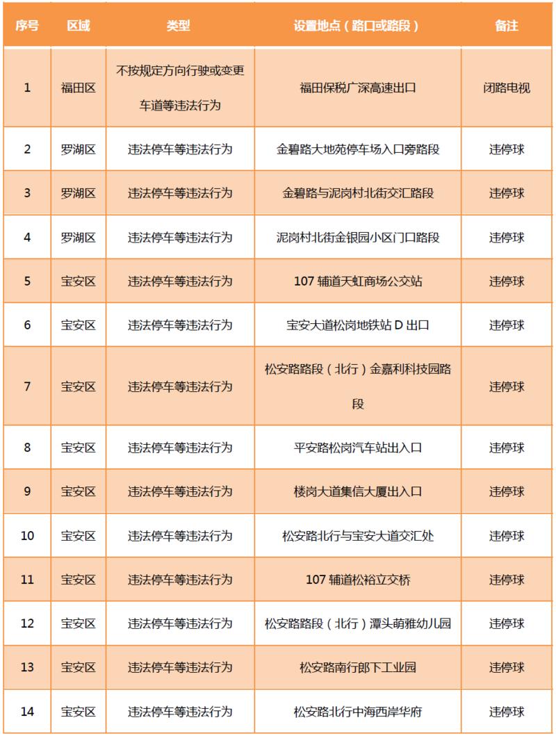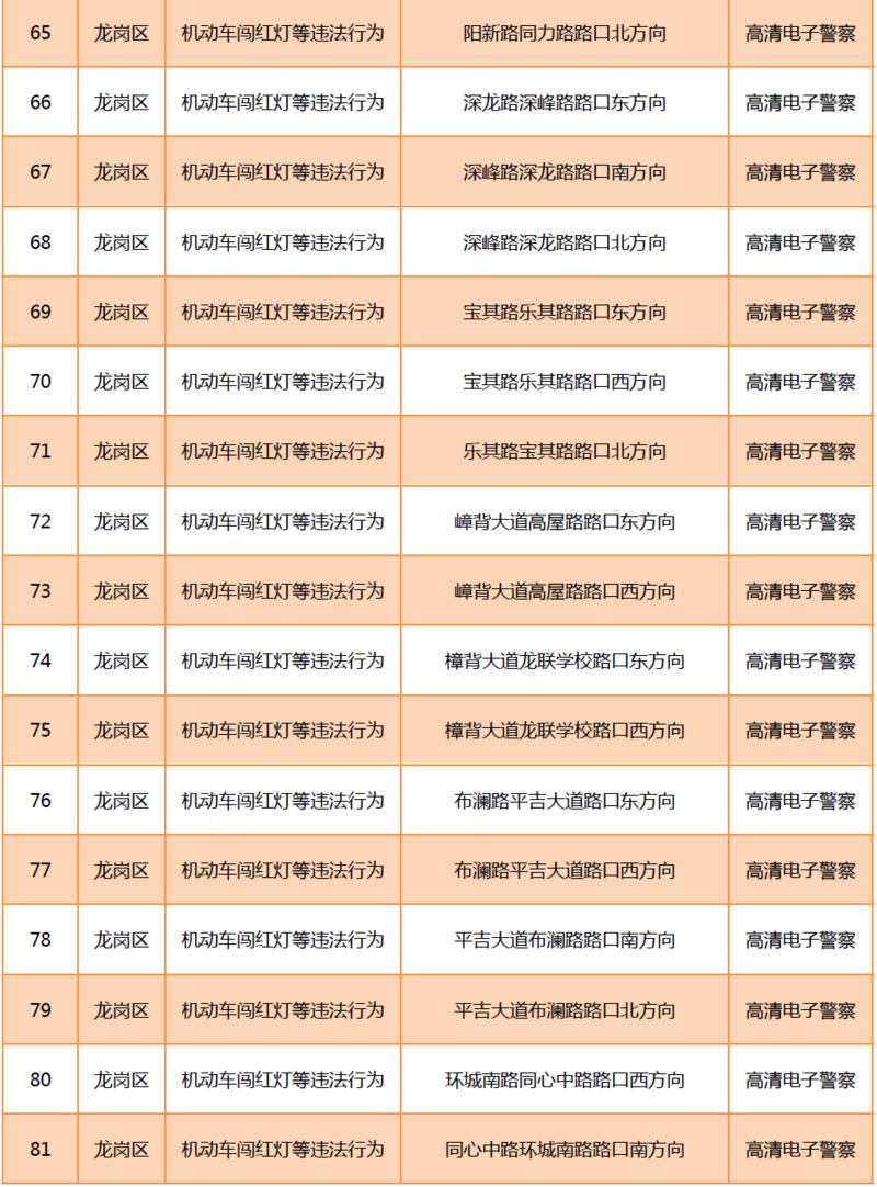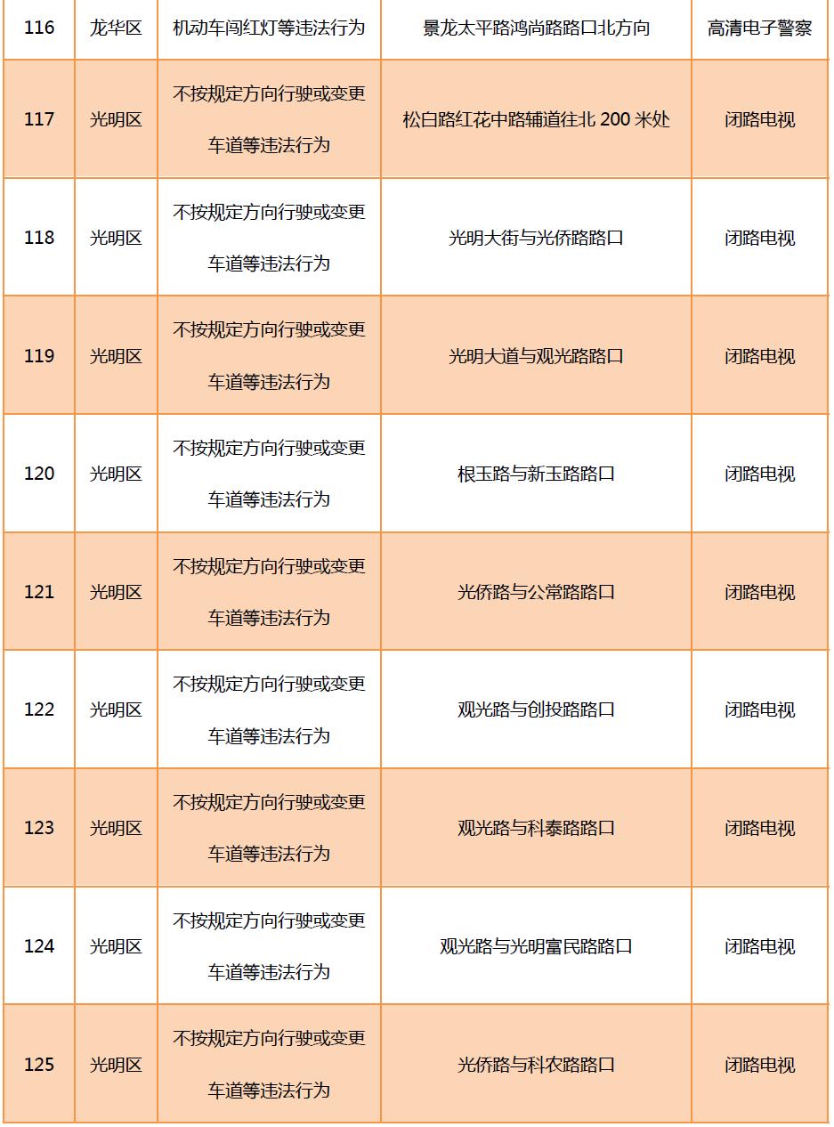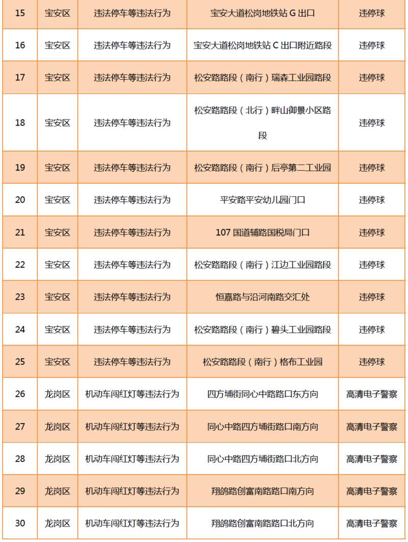 見圳客戶端?深圳新聞網(wǎng)2020年6月9日訊(晶報記者 鄧裴裴)6月9月,深圳市公安局交通警察局發(fā)布關于公布啟用190套交通技術監(jiān)控設備的公告,在福田區(qū)、羅湖區(qū)、寶安區(qū)、龍崗區(qū)、光明區(qū)啟用合計190套交通技術監(jiān)控設備,其中包括閉路電視、違停球、高清電子警察,類型為不按規(guī)定方向行駛或變更車道等違法行為和機動車闖紅燈等違法行為。