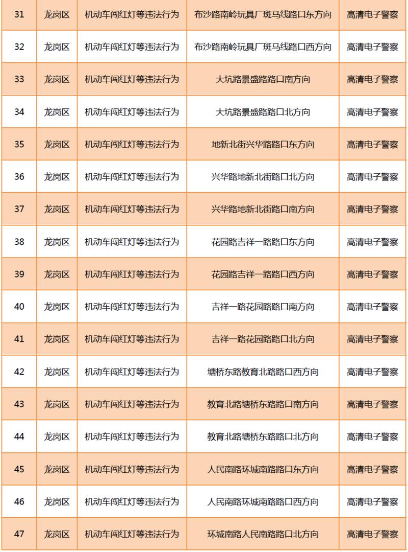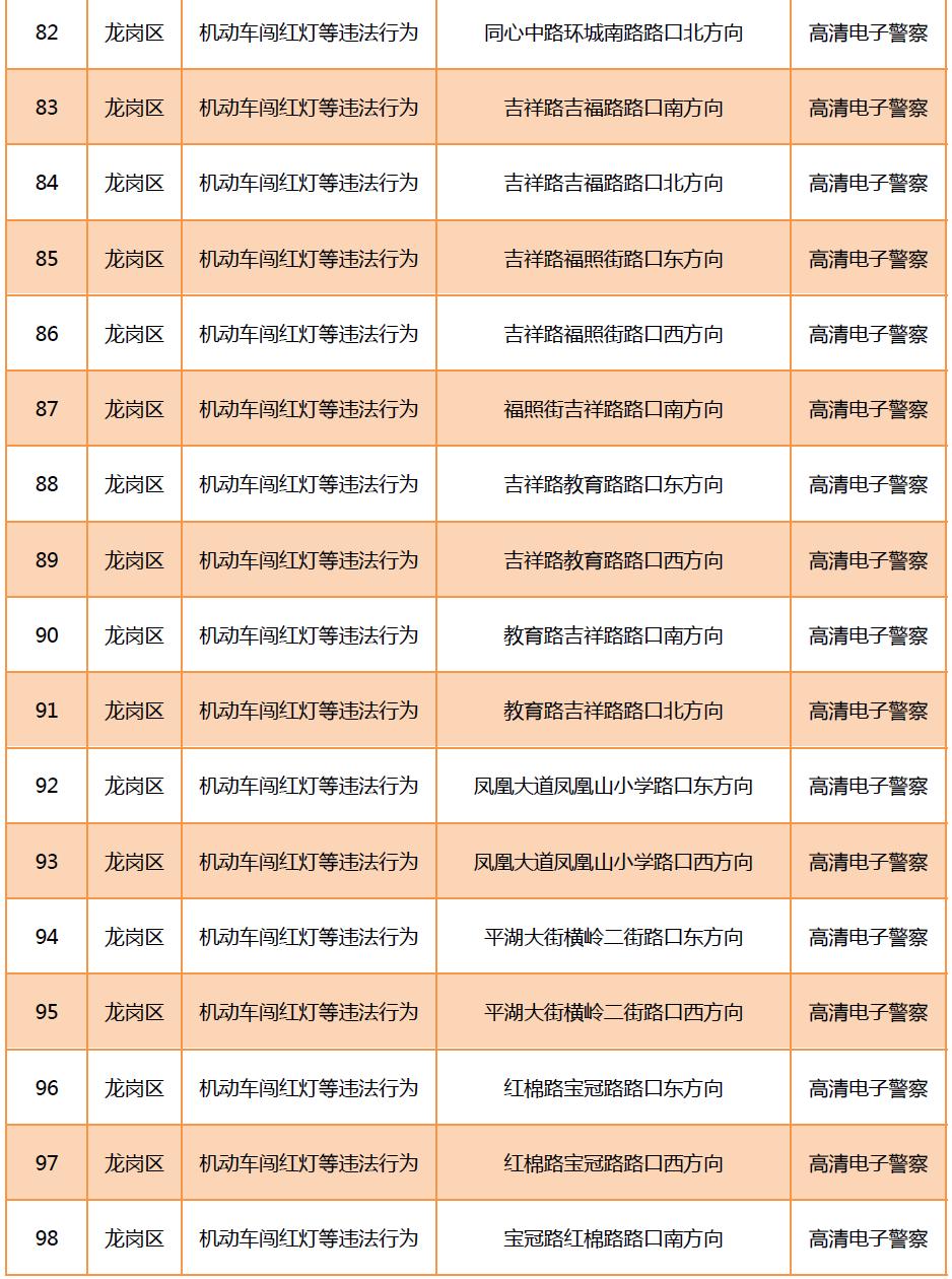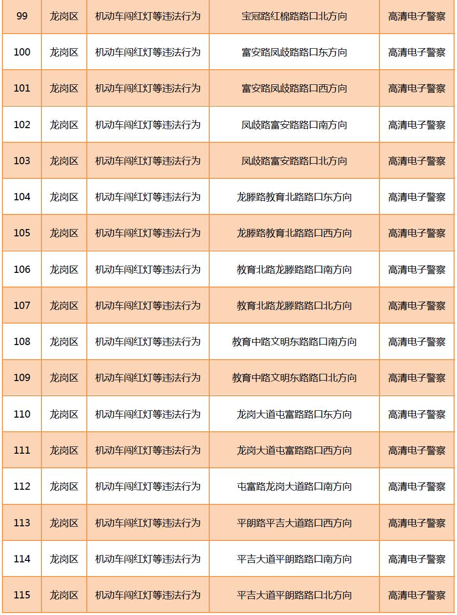 見圳客戶端?深圳新聞網(wǎng)2020年6月9日訊(晶報記者 鄧裴裴)6月9月,深圳市公安局交通警察局發(fā)布關于公布啟用190套交通技術監(jiān)控設備的公告,在福田區(qū)、羅湖區(qū)、寶安區(qū)、龍崗區(qū)、光明區(qū)啟用合計190套交通技術監(jiān)控設備,其中包括閉路電視、違停球、高清電子警察,類型為不按規(guī)定方向行駛或變更車道等違法行為和機動車闖紅燈等違法行為。