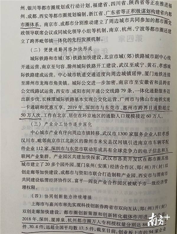國家發(fā)改委發(fā)展戰(zhàn)略和規(guī)劃司在關(guān)于都市圈建設(shè)進展方面提到,廣東省正積極謀劃構(gòu)建省內(nèi)都市圈體系。在構(gòu)建便捷通勤網(wǎng)絡(luò)方面,廣州市與佛山市地鐵實現(xiàn)一卡通刷和優(yōu)惠共享。2019年,深圳市與東莞市、惠州市跨界日通勤超過50萬人次。在產(chǎn)業(yè)分工協(xié)作方面,深圳市與東莞市聯(lián)動形成具有全球競爭力的電子信息和互聯(lián)網(wǎng)產(chǎn)業(yè)集群。
