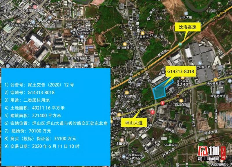 坪山G14313-8018宗地位于坪山區(qū)坪山大道與秀沙路交匯處東北角,土地用途為二類居住用地,起始價為7.01億元,土地面積為4.92萬平方米,建筑面積為22.14萬平方米。其建設住宅類型為出售的人才住房和出售的安居型商品房,其中出售的人才住房建筑面積為7.13萬平方米,出售的安居型商品房建筑面積為13.25萬平方米。項目建成后,宗地出售的人才住房銷售基準售價不高于1.98萬元/平方米,最高售價不高于2.08萬元/平方米;安居型商品房基準售價不高于1.65萬元/平方米,最高售價不高于1.73萬元/平方米。