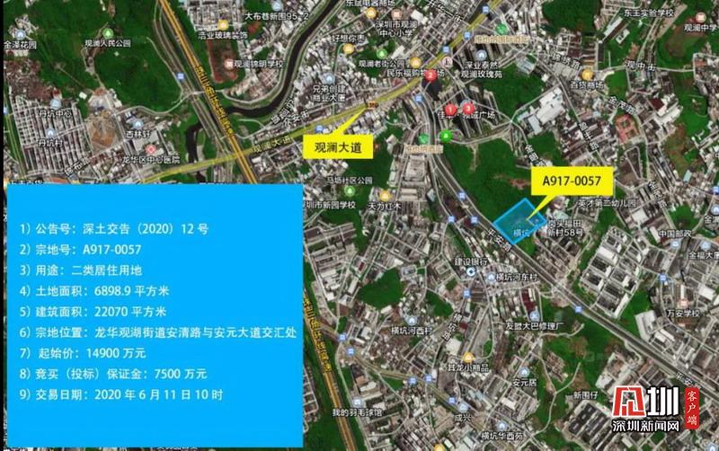 龍華A917-0057宗地位于龍華區(qū)觀湖街道安清路與安元大道交匯處,土地用途為二類居住用地,起始價為1.49億元,土地面積為6898.9平方米,建筑面積為2.21萬平方米。該宗地建設住宅類型為出售的人才住房,項目建成后出售的人才住房銷售基準售價不高于2.97萬元/平方米,最高售價不高于3.12萬元/平方米。