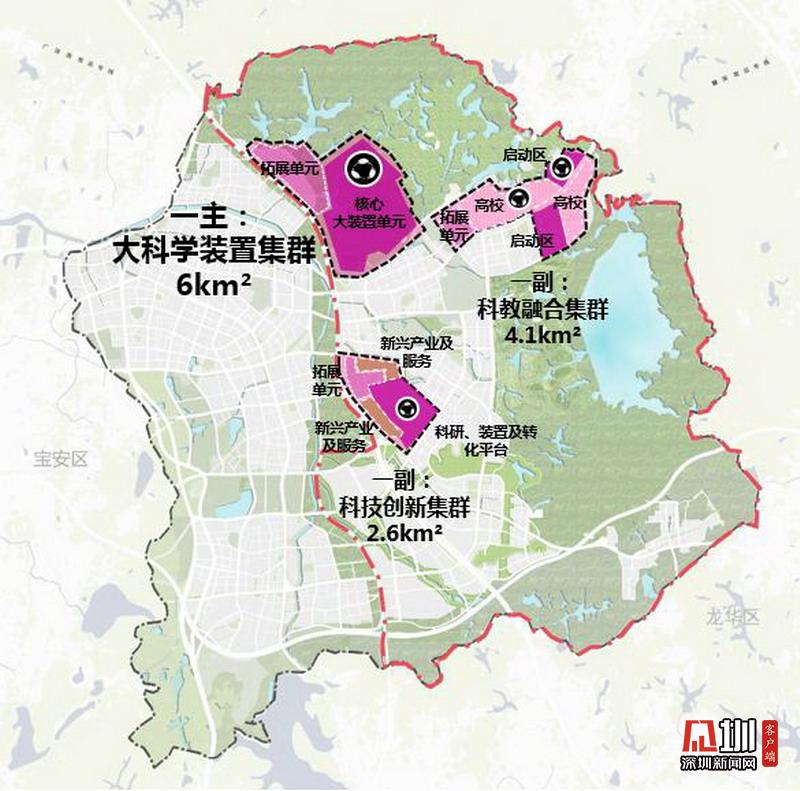 2019年8月18日,國(guó)家發(fā)布了《中共中央國(guó)務(wù)院關(guān)于支持深圳建設(shè)中國(guó)特色社會(huì)主義先行示范區(qū)的意見》,提出以深圳為主陣地建設(shè)綜合性國(guó)家科學(xué)中心。市規(guī)劃和自然資源局地區(qū)規(guī)劃處副處長(zhǎng)葉陽介紹,光明科學(xué)城北起深莞邊界,東部和南部以光明區(qū)轄區(qū)為界,西部以龍大高速和東長(zhǎng)路為界,規(guī)劃總面積99平方公里,將構(gòu)建“一主兩副”的科學(xué)裝置集聚區(qū)空間布局。