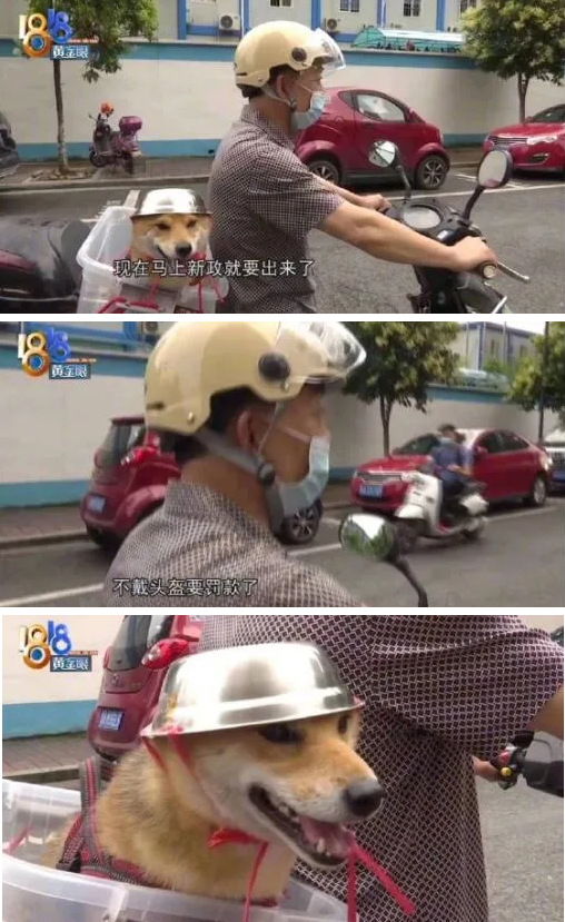 騎車戴頭盔,才能在事故發(fā)生時保護自己……和狗子。