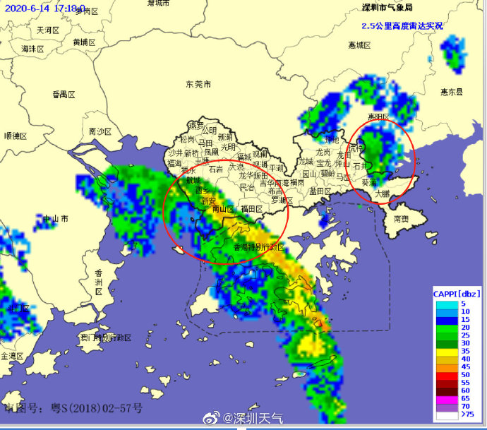 深圳市氣象臺于2020年06月13日14時45分在全市發(fā)布雷電預(yù)警,預(yù)計2小時內(nèi)全市將受雷電影響,市民停留在安全地方;按照防御預(yù)案停止戶外易燃易爆危險作業(yè),并加強(qiáng)?;瘓鏊踩芾怼?/p>