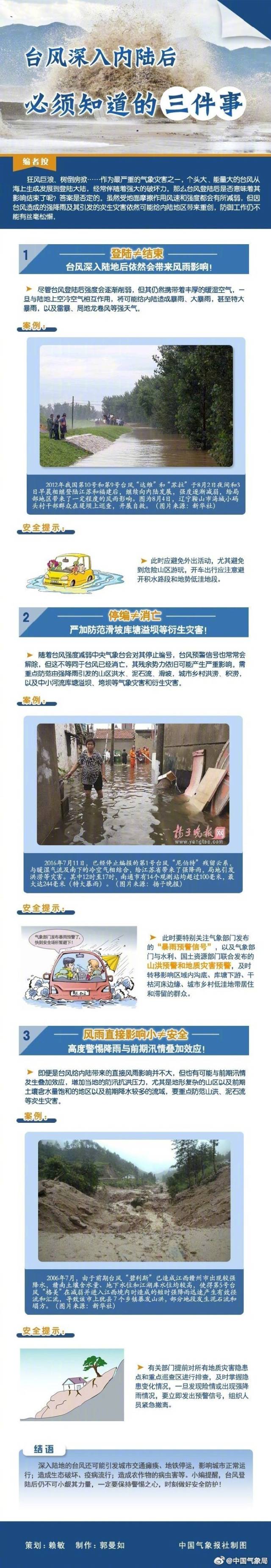 3、風(fēng)雨直接影響小不等于安全。即便臺風(fēng)給內(nèi)陸帶來的直接風(fēng)雨影響不大,但可能與前期汛情疊加,產(chǎn)生泥石流等次生災(zāi)害。