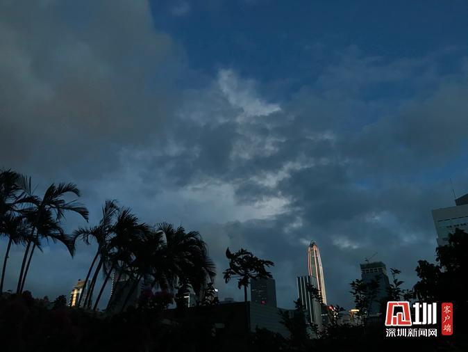 天空變暗,風(fēng)力明顯加強(qiáng),在戶外的市民注意防護(hù)。