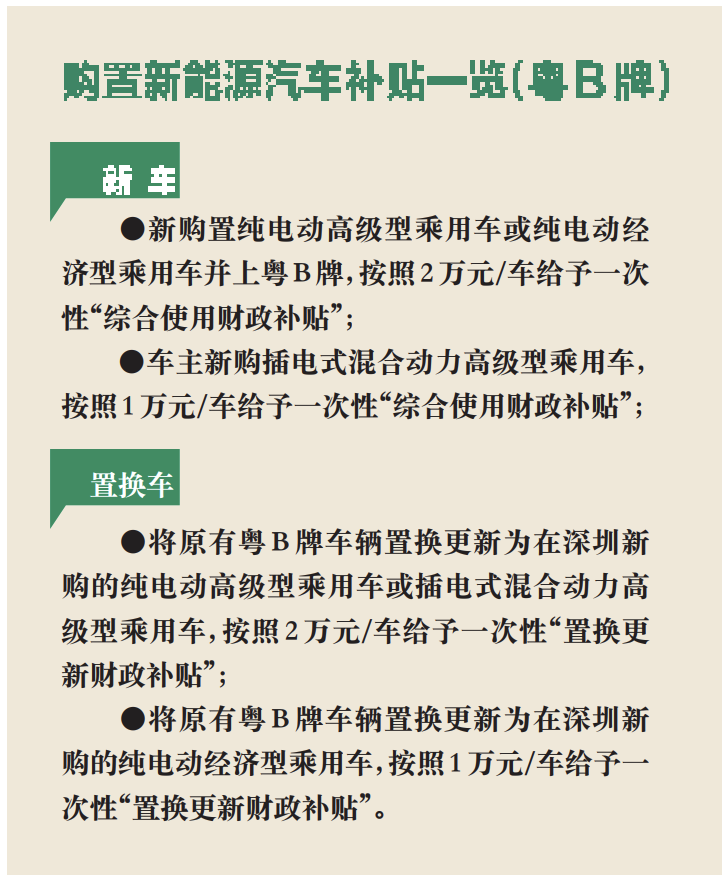 ⑥近日,市發(fā)改委發(fā)布《深圳市應(yīng)對新冠肺炎疫情影響促進(jìn)新能源汽車推廣應(yīng)用若干措施財(cái)政補(bǔ)貼申領(lǐng)工作指引》,將原有粵B牌車輛置換更新為在深圳市新購的新能源小汽車并上粵B牌的個(gè)人消費(fèi)者,最高可享受一次性財(cái)政補(bǔ)貼4萬元。市生態(tài)環(huán)境局再次發(fā)布溫馨提示,我市老舊車提前淘汰獎(jiǎng)勵(lì)補(bǔ)貼政策將于6月30日截止,請車主抓緊時(shí)間淘汰車輛,逾期將不能享受補(bǔ)貼。
